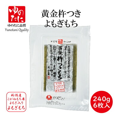 ゆのたに「黄金杵つきもち よもぎもち」240g (6枚入) 新潟産こがねもち米100%使用 国産よもぎを使用したかおり豊かなよもぎ餅です 国産よもぎを使用した香り高いお餅です 「新潟産こがねもち米」100%と国産よもぎです。