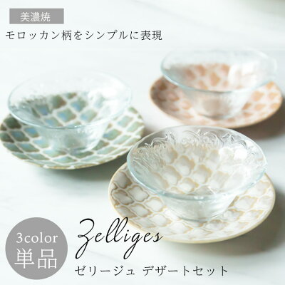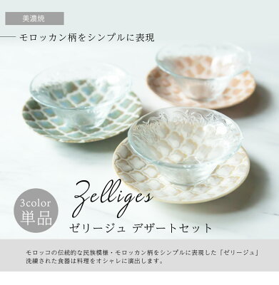 美濃焼 ゼリージュ デザートセット 単品 〜エキゾチックで粋な演出を〜 モロッコの伝統的民族模様・モロッカン柄をシンプル表現した「ゼリージュ」 ゼリー、グラノーラ、ヨーグルト、フルーツカクテル、アイスクリームなどとしてご利用いただけます。