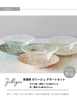 【美濃焼】ゼリージュ デザートセット(ガラス鉢×中皿) 単品 アイスクリーム デザート グラノーラ皿 食器 皿 和食器 磁器 ガラス ギフト 父の日 母の日お祝い 内祝 結婚祝い 出産祝【楽ギフ_包装】【楽ギフ_のし宛書】