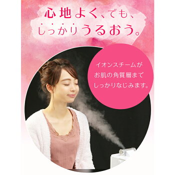 イオン化された微細スチームでお肌に潤いを!可動式ノズルで楽な姿勢で胸元〜額までの範囲をケア。