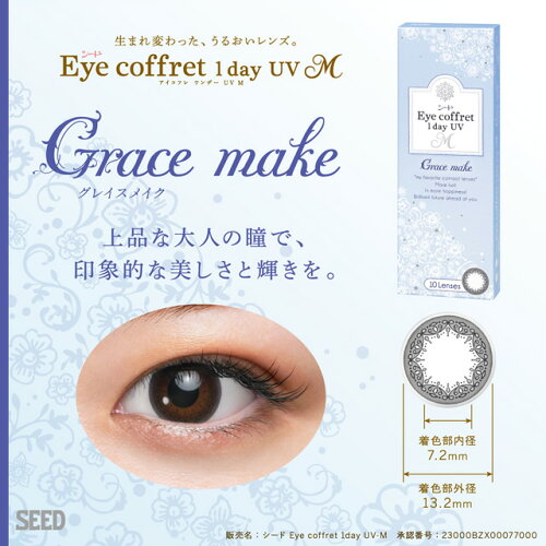 北川景子さんイメージモデル カラー グレイスメイク(グレー模様入)、ベースメイク(ライトブラウン)、ナチュラルメイク(ブラック)、リッチメイク(ブラウン模様入) 、ファーストメイク(ブラウン) 度数 0.00〜-12.00 使用期限 1日 内容量 1箱10枚 DIA(直径) 14.0mm、14.2mm(ファーストメイク) BC(ベースカーブ) 8.7mm 含水率 38.0% 製造販売元 シード 販売元 シード 生産国 台湾 区分 高度管理医療機器 承認番号 23000BZX00077000 ご注意下さい 7箱以上ご購入されますと、佐川急便より通常便配送となります 広告文責 リーチフェイス株式会社06-6711-0828 まだまだあります ワンデーカラーコンタクト こちらでチェック!