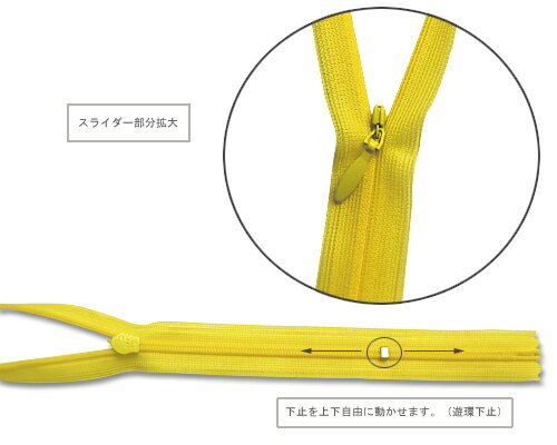 ●樹脂ファスナー●用途:衣料(婦人服スカート、ワンピース・上衣のポケット、袖口)【商品の詳細】エレメント(ファスナーのかみ合う部分)や、縫い目が表地に出ないファスナーです。