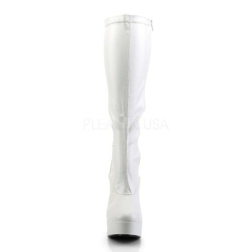 【取寄】 送料無料 コスプレ 厚底ロングブーツ ストレッチ サイドジッパー付 12.5cm チャンキーヒール 白 ホワイト つや消し Pleaser プリーザー 大きいサイズ 靴 イベント 仮装 女装 男装 パーティ- ハロウィン コスプレ